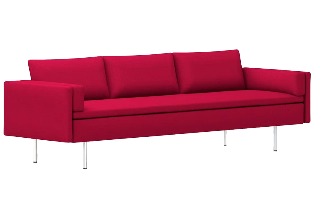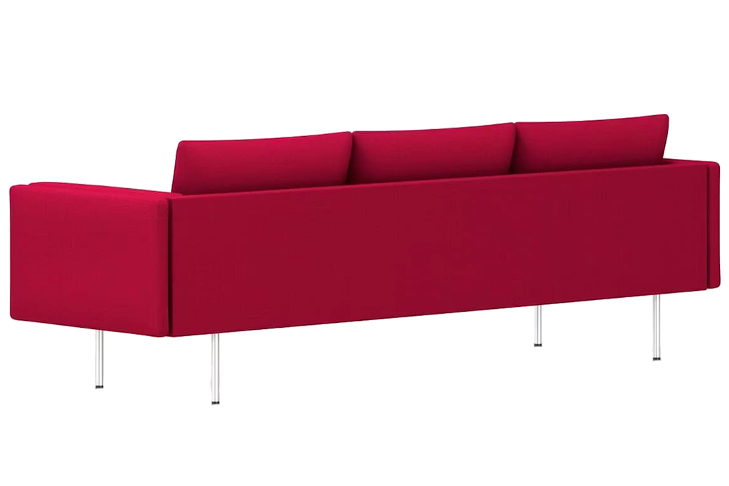 The Bolster Sofa combines luxurious lounging comfort with proper ergonomic support, making it ideal for both relaxed living and active conversation. Its long, slim seat cushions rest on minimal steel legs, emphasizing strong horizontal lines that give the piece a grounded, architectural presence. These lines are enhanced by plush back cushions, crafted from a supportive blend of foam and fiber to offer lasting comfort throughout the day. With its clean form and understated elegance, the Bolster Sofa integrates effortlessly into both classic and contemporary interiors, whether in residential or commercial spaces.
