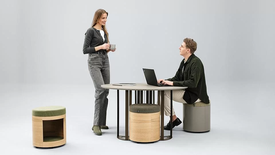 Imagine you are sitting in your office lounge area on a cosy sofa with a coffee table in front of you. You are talking about projects with your team, showing them colour swatches when you need to write something down. You lean over the table and stay in this posture for a moment. It is not very comfortable, right?