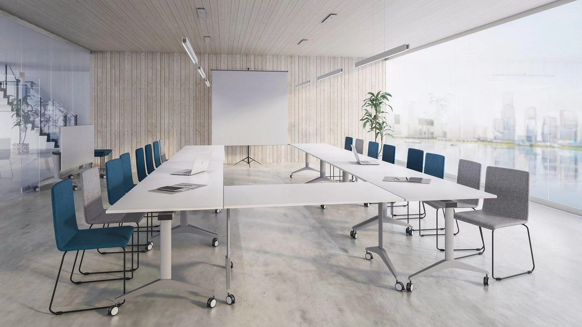 Modern office spaces require flexible solutions. A FLIP-TOP desk has a desktop that can be flipped up in a vertical position and comes with casters. This will not only enable you to save space but also easily prepare the office space for meetings, conferences, trainings or collaborative work.