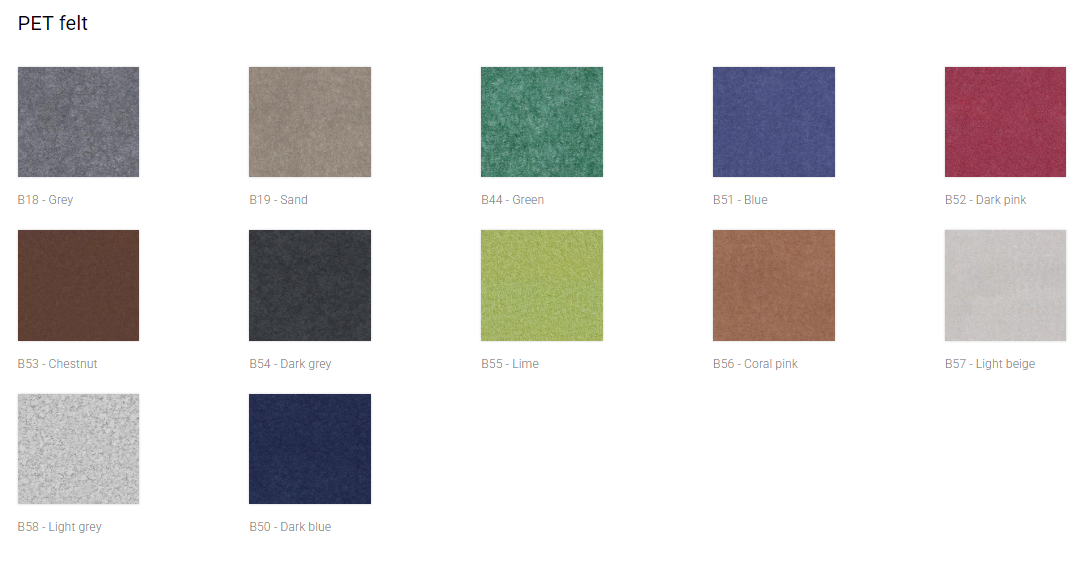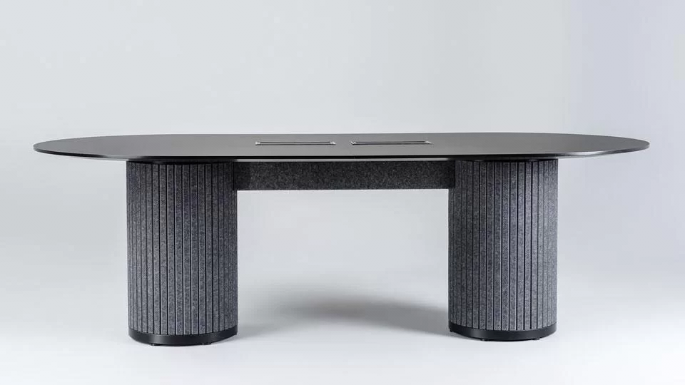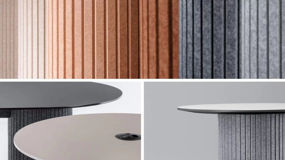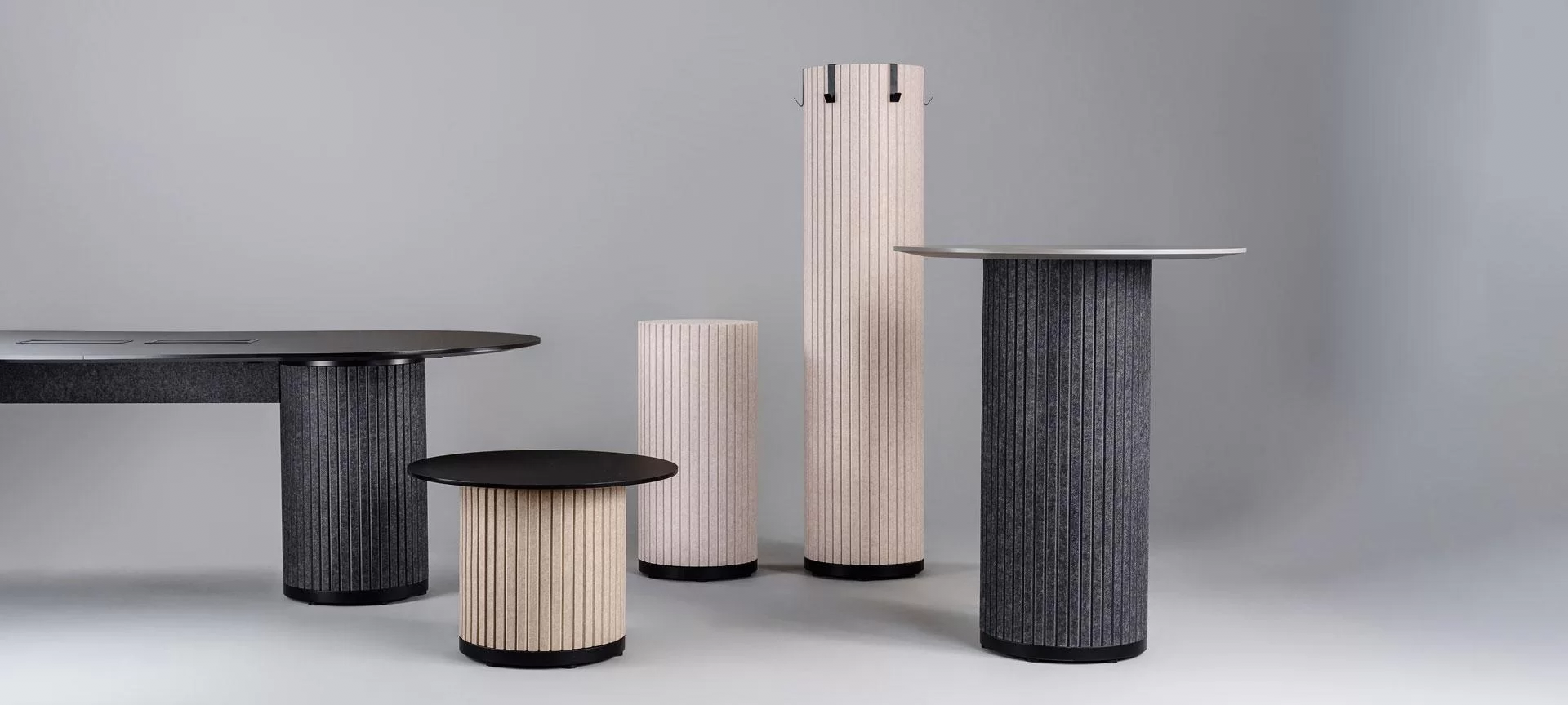 PET felt features acoustic properties. The porous surface absorbs sound, while the vertical cut-outs disperse some of the sound waves. We recommend combining these tables with the PARTHOS acoustic columns. They will not only ensure a better acoustic environment but will also create stylistically harmonious interiors for meeting, relaxation and other spaces.