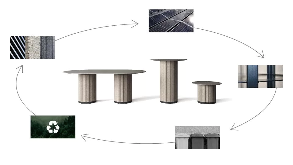 NARBUTAS consistently applies the key principles of sustainability. When creating a new piece of furniture, we carefully think not only about its design and functional solutions but also about the entire cycle of its production and use. The PARTHOS tables are made from recyclable materials using energy from renewable sources. The furniture is durable and its design is well thought out. The tables that are no longer in use can be easily disassembled and their parts can then be recycled.