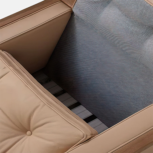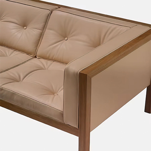 Thoughtfully designed for practicality and elegance, the Nelson Cube Sofa features hinged cushions that easily flip upward—making routine cleaning quick and hassle-free. This smart detail preserves the sleek look of the piece while ensuring lasting comfort and hygiene. The solid wood frame is expertly crafted with beveled, tri-mitered edges that join seamlessly at every corner, forming crisp, uninterrupted lines. This attention to geometric precision not only reinforces the sofa’s structure but also enhances its architectural character, making it a refined choice for minimalist interiors with high design expectations.