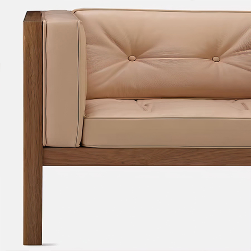 Every Nelson Cube Sofa is a unique expression of natural craftsmanship, thanks to the organic variations found in its solid wood frame. The warm grain of the wood adds character and depth, making each piece feel custom-made. Carefully upholstered cushions feature deep tufting and precisely sewn piping that not only enhances durability, but also brings a sense of tailored elegance to the overall design. The structured form of the sofa contrasts beautifully with the softness of the leather, offering a timeless balance of comfort, geometry, and refined detail—ideal for interiors that value both minimalism and craftsmanship.