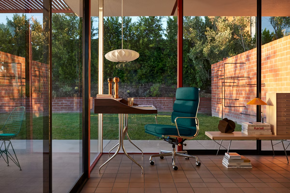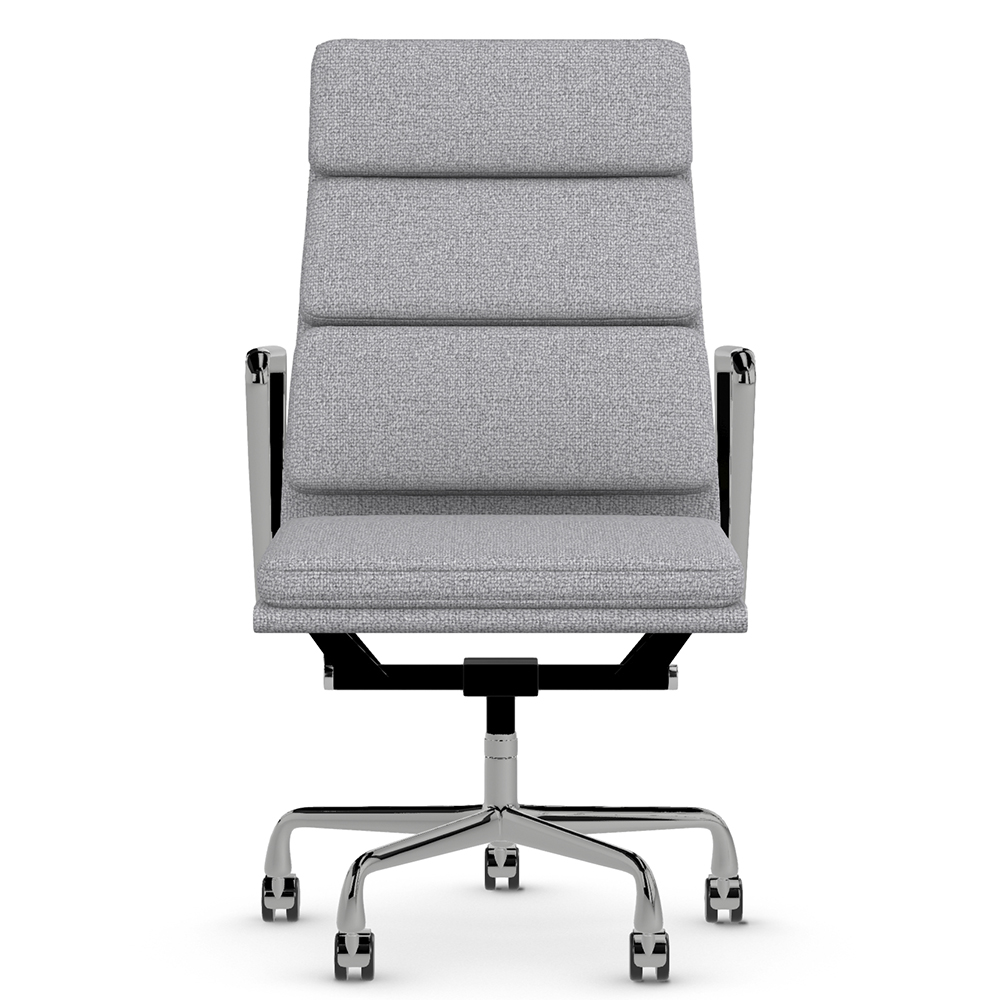The Eames Soft Pad™ Group builds upon the groundbreaking innovation of the original Aluminum Group, adding a new dimension of comfort and luxury. Retaining the sleek aluminum frame and the continuous seat-back suspension that gently adapts to the body, this evolution introduces individually upholstered, two-inch-thick cushions. The result is a plush, supportive “sitting pocket” that enhances the ergonomic benefits of the original design while offering a softer, more inviting experience. With its balance of structure and comfort, the Soft Pad™ Group brings a refined, executive-level feel to the timeless silhouette introduced in 1958.