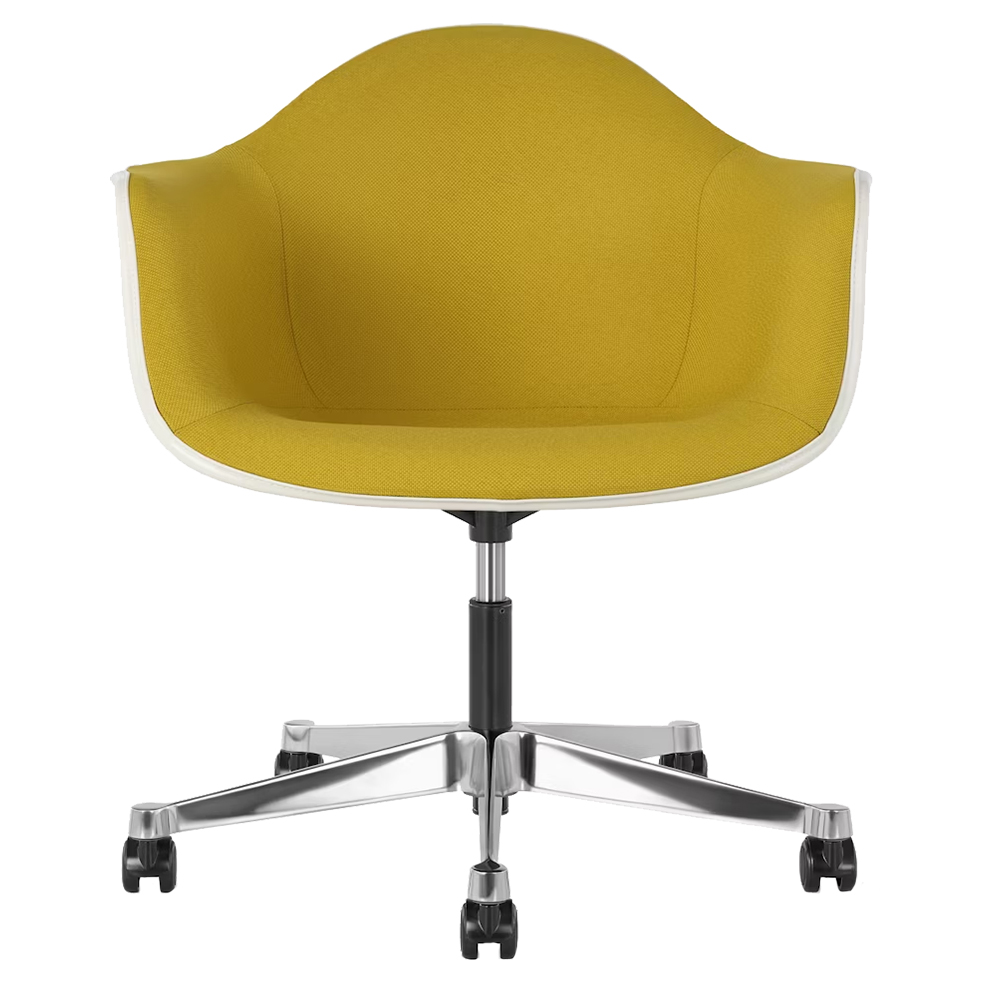 Originally envisioned by Charles and Ray Eames in the 1950s, the Molded Plastic Chair remains one of the most celebrated seating innovations of the 20th century. This task armchair builds on that heritage—combining the timeless, ergonomic single-shell silhouette with modern functionality and comfort. Made with 100% recycled plastic, the sculpted seat offers gentle support, while the upholstered interior adds softness and texture. The integrated armrests, adjustable height, and smooth-rolling casters make it ideal for dynamic work environments—whether you're moving around your home office or focused at your desk. Versatile, lightweight, and unmistakably Eames—the Molded Plastic Task Armchair brings mid-century design into today’s workspace.