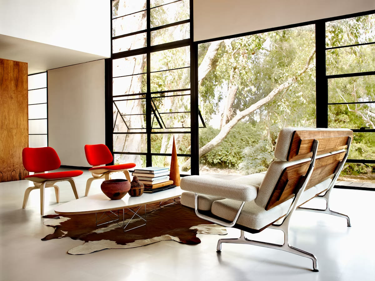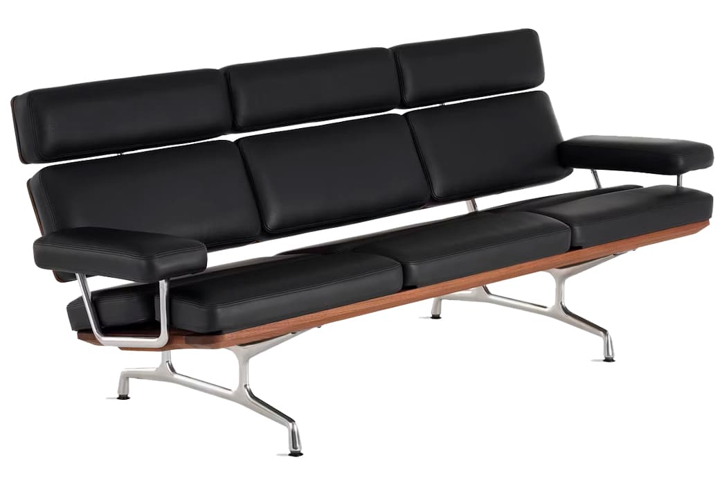 The Eames Sofa is a masterclass in modern design—where precise geometry meets warmth and material richness. Its signature angled profile and crisp, architectural planes elevate the sofa’s presence, making it a focal point in any setting. Crafted with a refined blend of natural wood (available in rich walnut or teak), polished aluminum, and carefully tailored upholstery, the sofa strikes a perfect balance between structure and comfort. Newly available in MCL Leather, it offers both luxurious texture and everyday durability. Available in two- and three-seat options, the Eames Sofa is equally at home in a refined living room, executive office, or high-design reception area—an enduring icon of form and function.