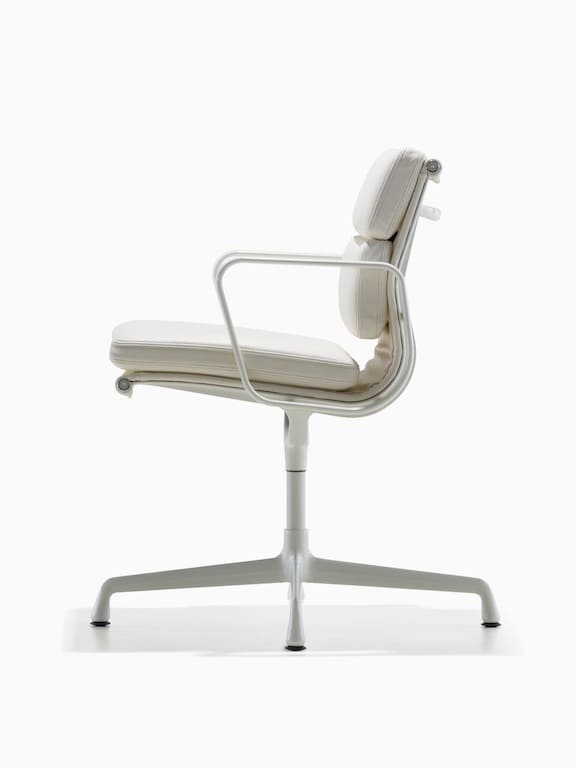 Elegant and versatile, the Eames Soft Pad Side Chair offers a compact interpretation of the iconic Soft Pad™ design. Retaining the sculptural aluminum frame and plush, individually upholstered cushions, this armless side chair is ideal for conference settings, dining spaces, guest seating, or stylish home interiors. Its refined silhouette and ergonomic comfort make it a sophisticated choice for those seeking timeless design in a more understated, space-saving form — all while delivering the luxurious feel and support that define the Soft Pad™ collection.