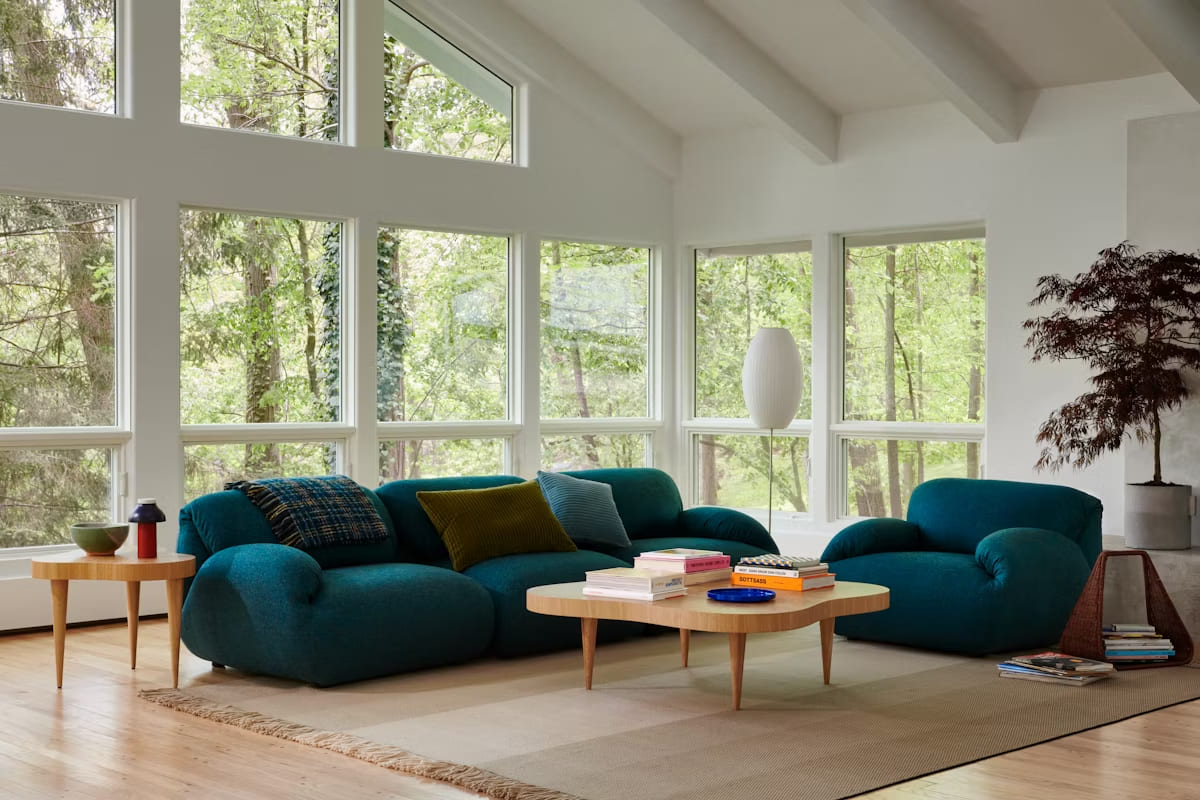 Luva is available in several configurations, from an armchair and chaise to a sofa or sectional. A detachable ottoman adds to the variety and unique configurations. Thanks to a hidden bar near the bottom of the seat, these pieces can be ganged together easily, or moved apart as desiredâall without changing the look and feel of the soft support Luva provides.