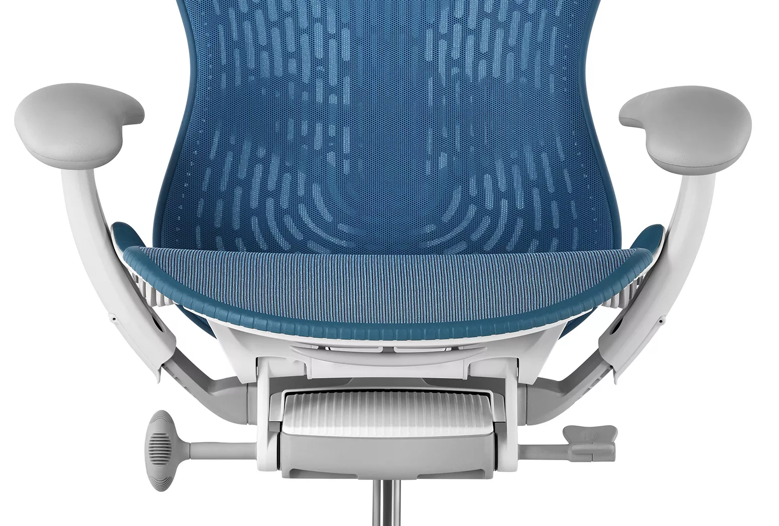The upholstery of the back is a pattented technology called AireWeave - this is a mixture of the firm threads with polyester yarn that forms into porous mesh. This lightweight, durable structure is breathable, maintaining natural body temperature and evenly distributing the weight of the seated person.