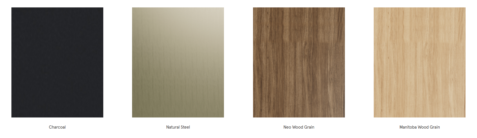 • Customizable steel legs with powder-coated or wood grain fnishes.
