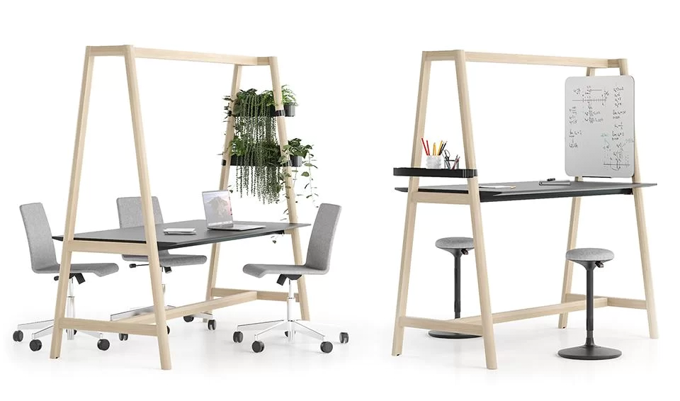 NOVA Wood desking system is ideal for open plan offices where you can arrange different areas for individual or collaborative work, meetings, and leisure activities.