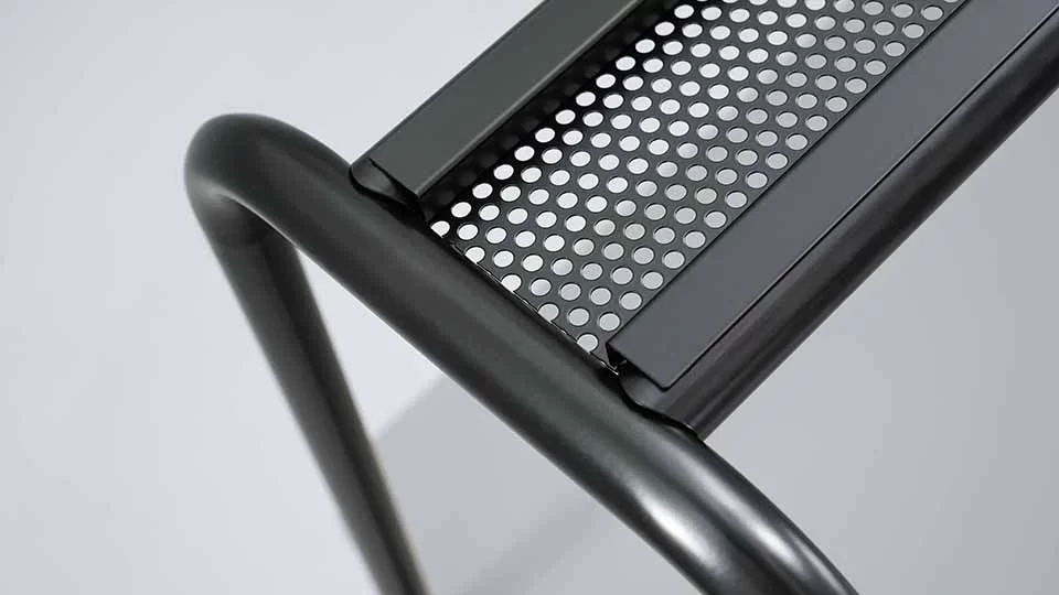 The main distinctive feature of the tables is their round metal tube legs. This element harmoniously blends the industrial look of metal with a combination of curved shapes, adding a touch of gracefulness to the furniture and ensuring its durability and longevity. The rounded corners and chamfered edges of the tabletops also echo the subtly rounded lines. The curved shapes soften the character of the furniture, encourage pleasant conversations and efficient collaboration, and create a harmonious and cosy look of a modern office.