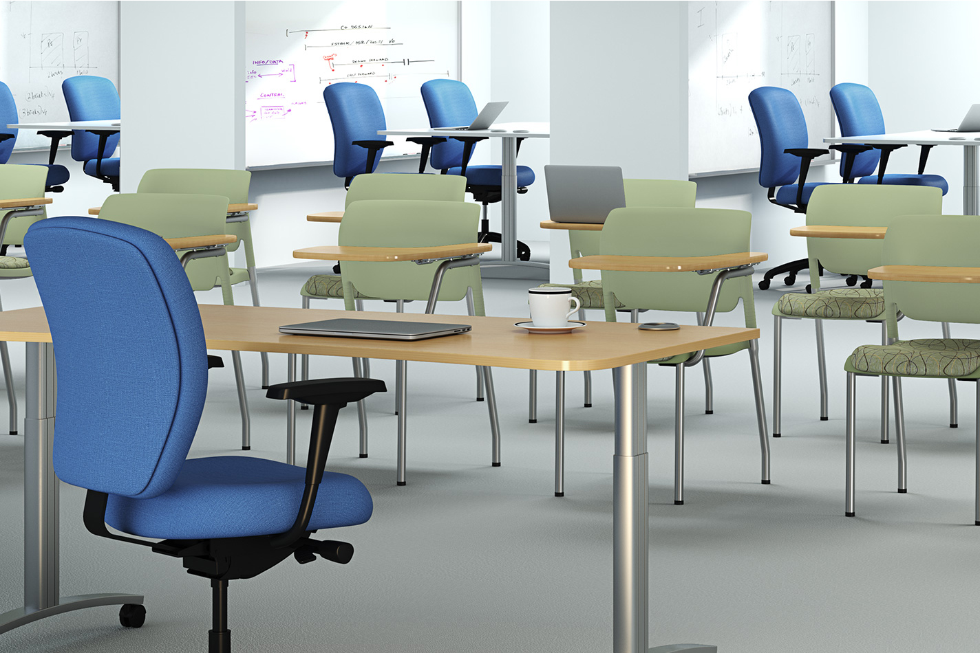 The Knack⢠chair features a classic and clean design that is ideal for various professional environments such as corporate offices, healthcare facilities, government offices, and educational institutions. Its ergonomic backrest is designed to align with the spine's natural curvature, ensuring excellent support during long periods of sitting.Â